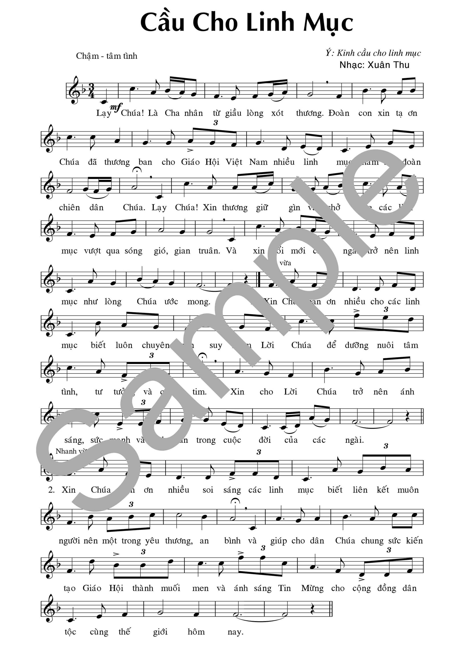 Ý: Kinh Cầu Cho Linh Mục – Nhạc: Xuân Thu XEM BẢN MẪU NGHE NHẠC