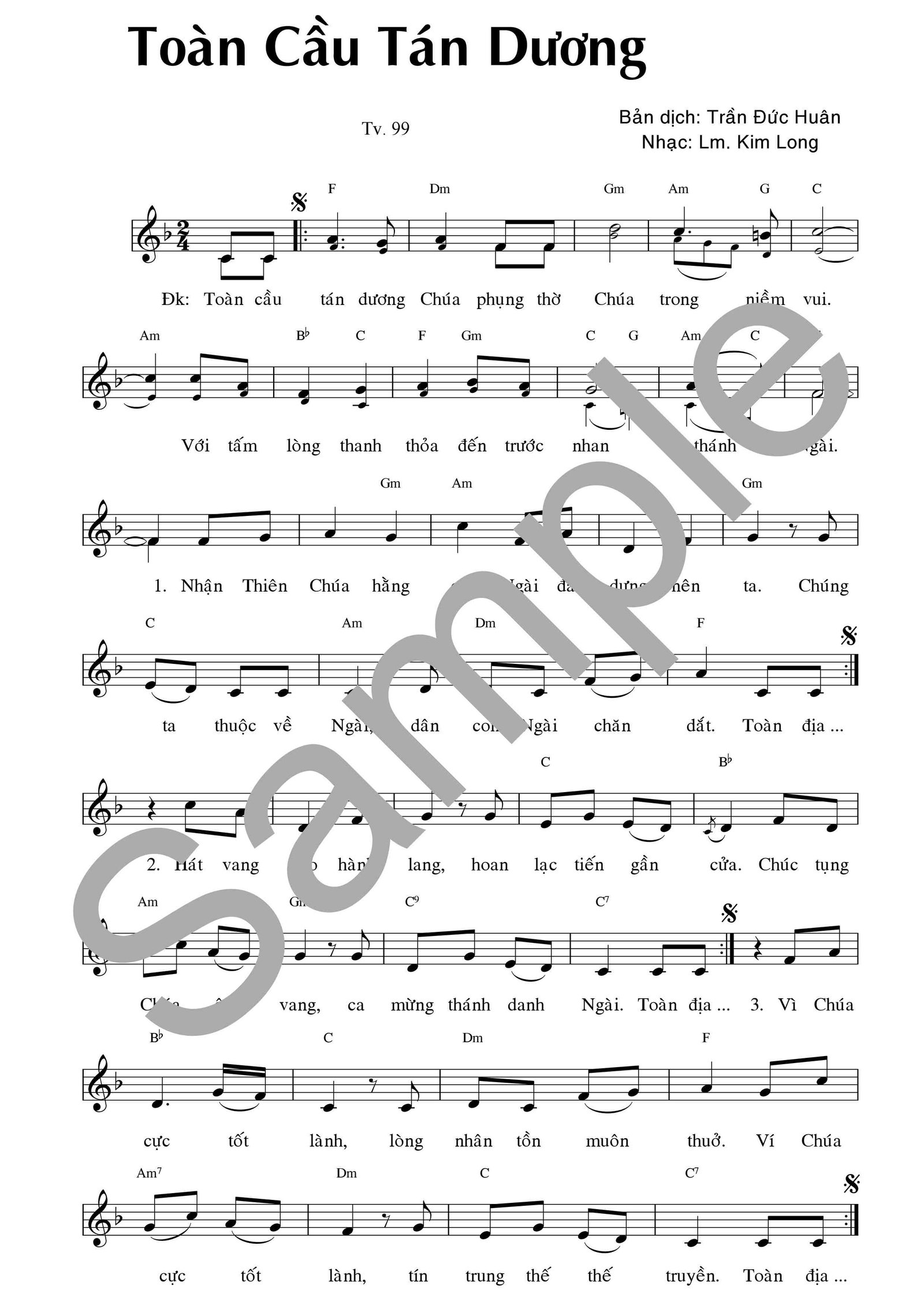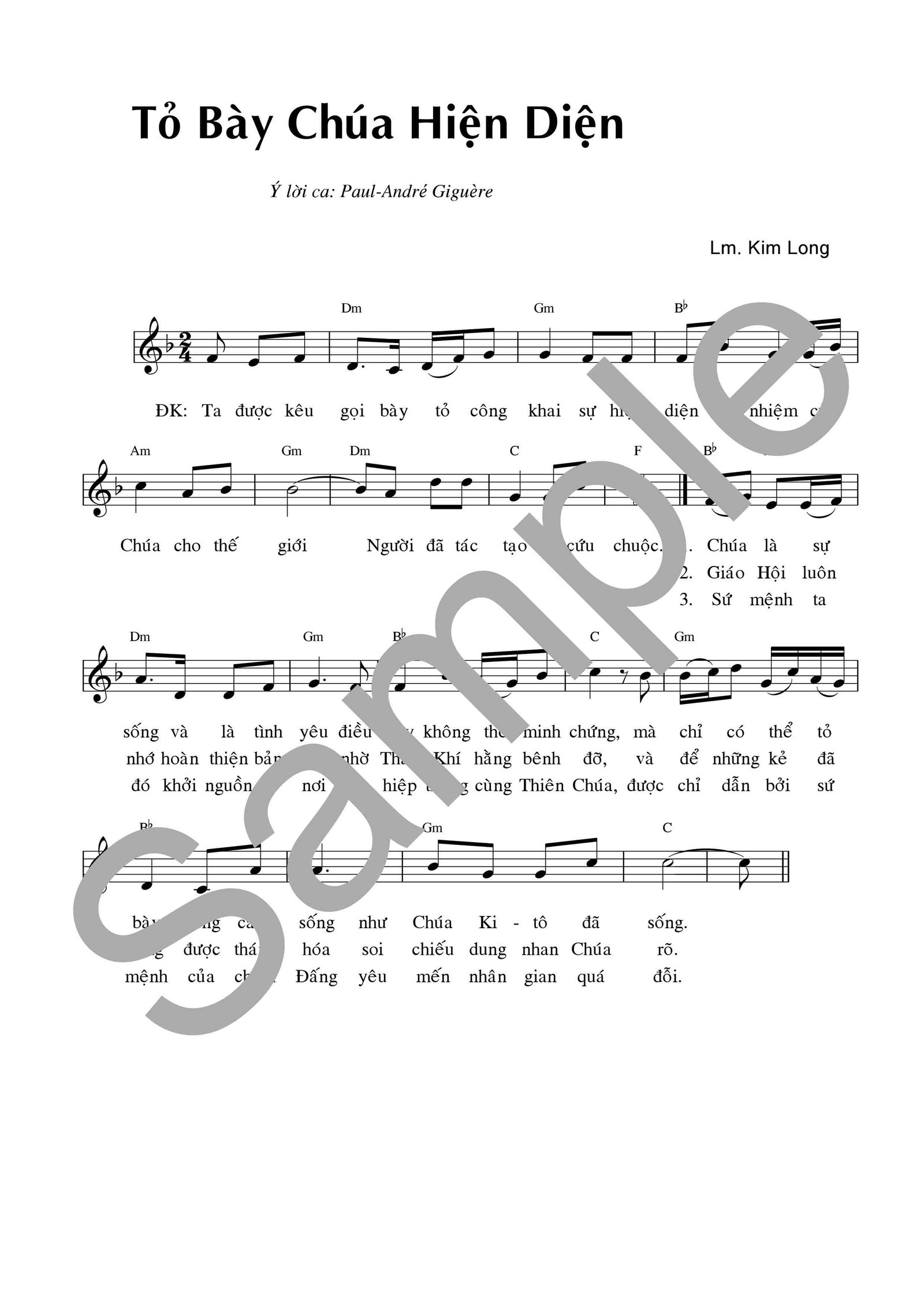 Bản dịch: Trần Đức Huân – Nhạc: Lm. Kim Long