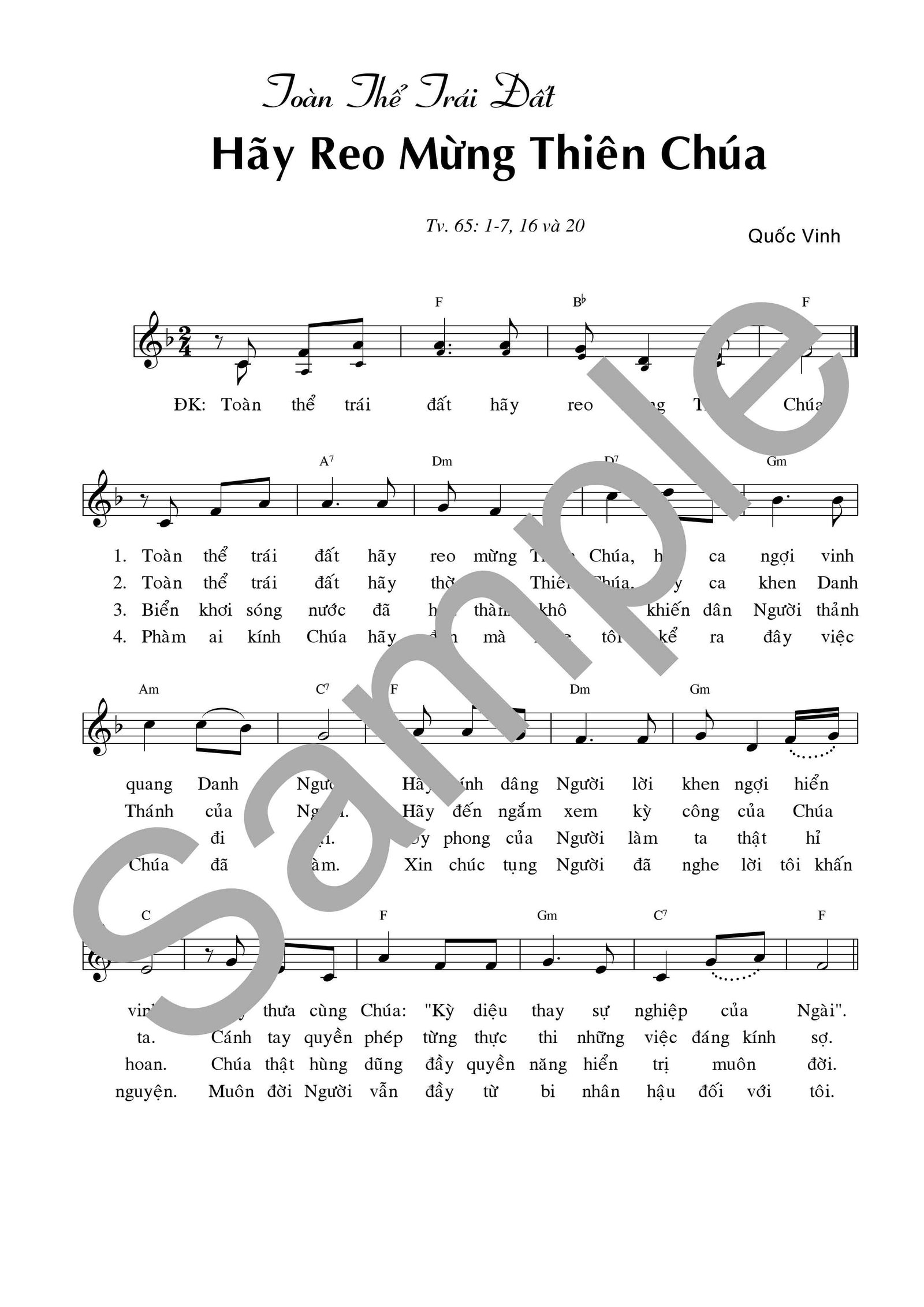 Toàn Thể Trái Đất Hãy Reo Mừng Thiên Chúa (Tv. 65)