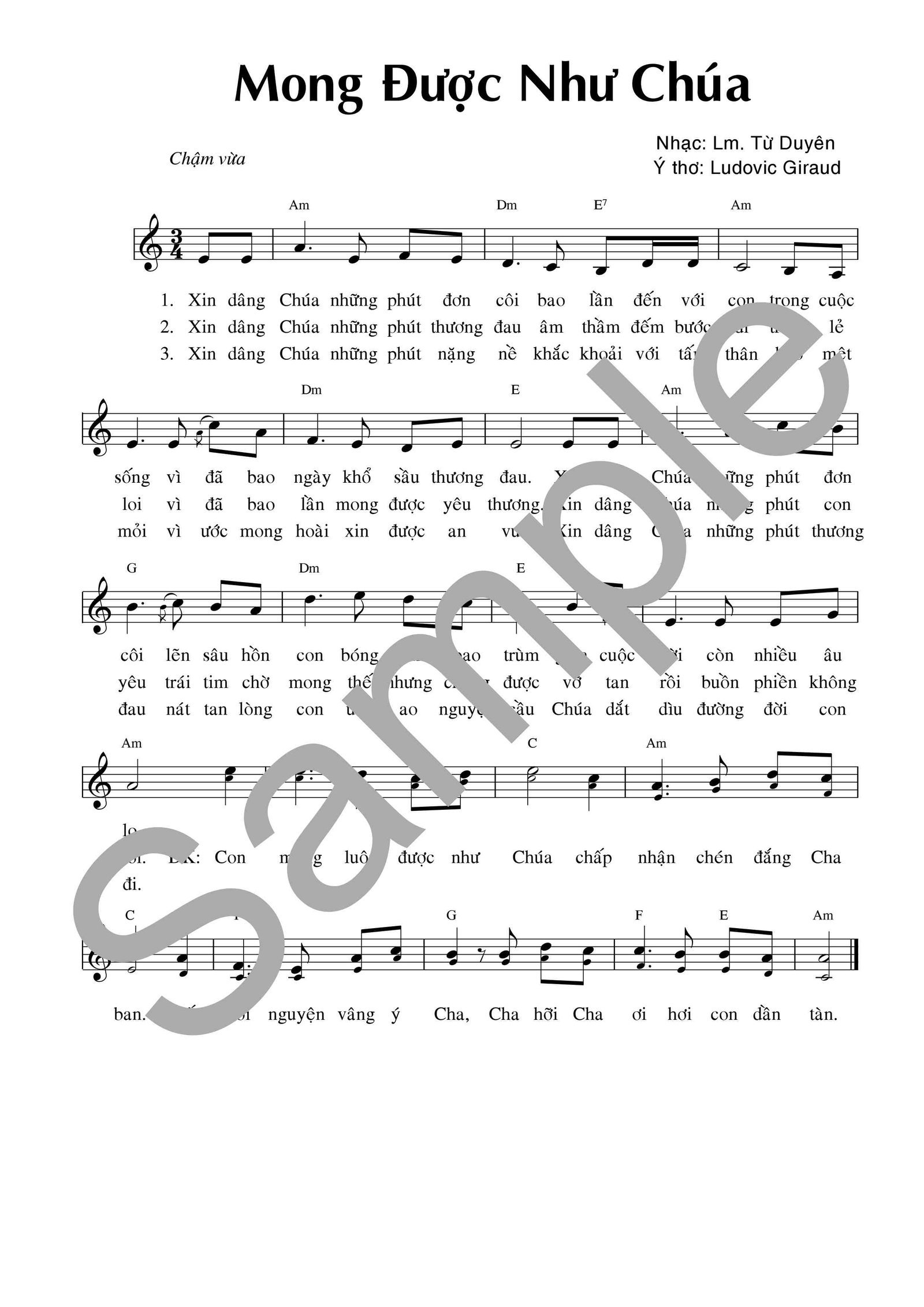 Nhạc: Lm. Từ Duyên – Ý thơ: Ludovic Giraud