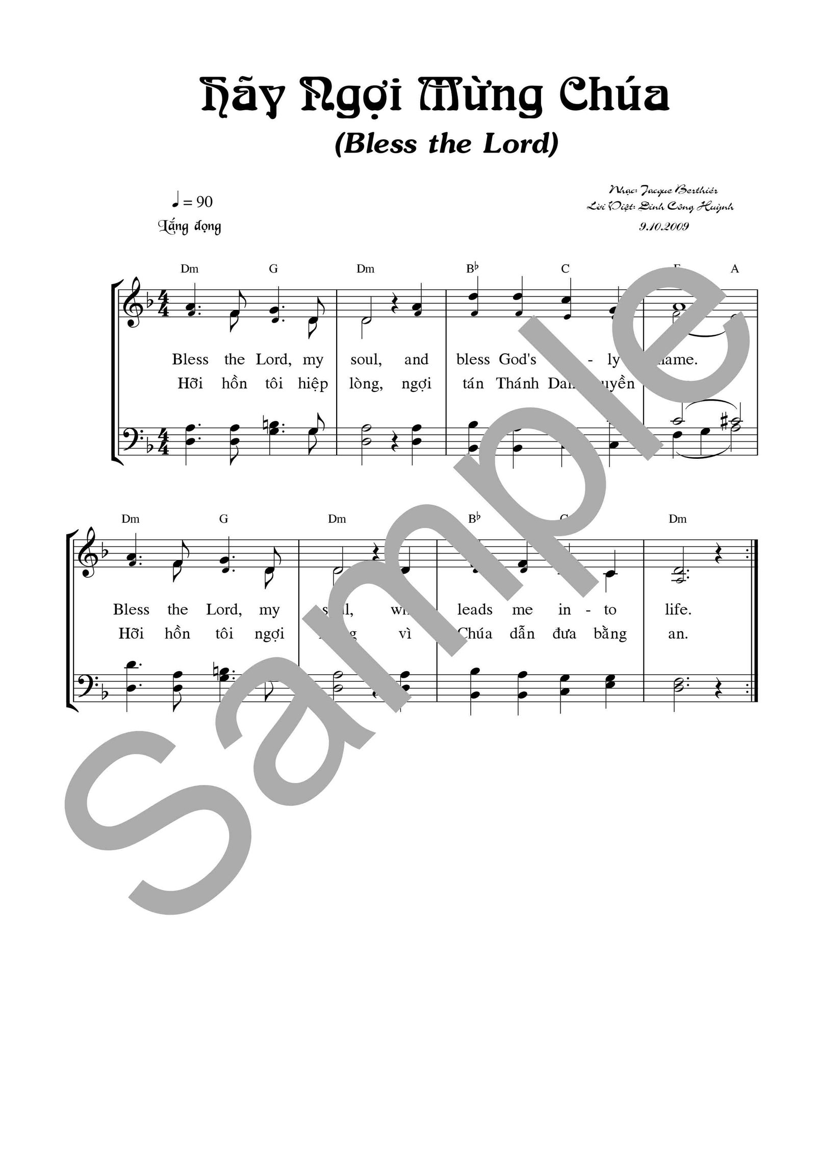 Nhạc: Jacques Berthiér – Hòa âm: Đinh Công Huỳnh