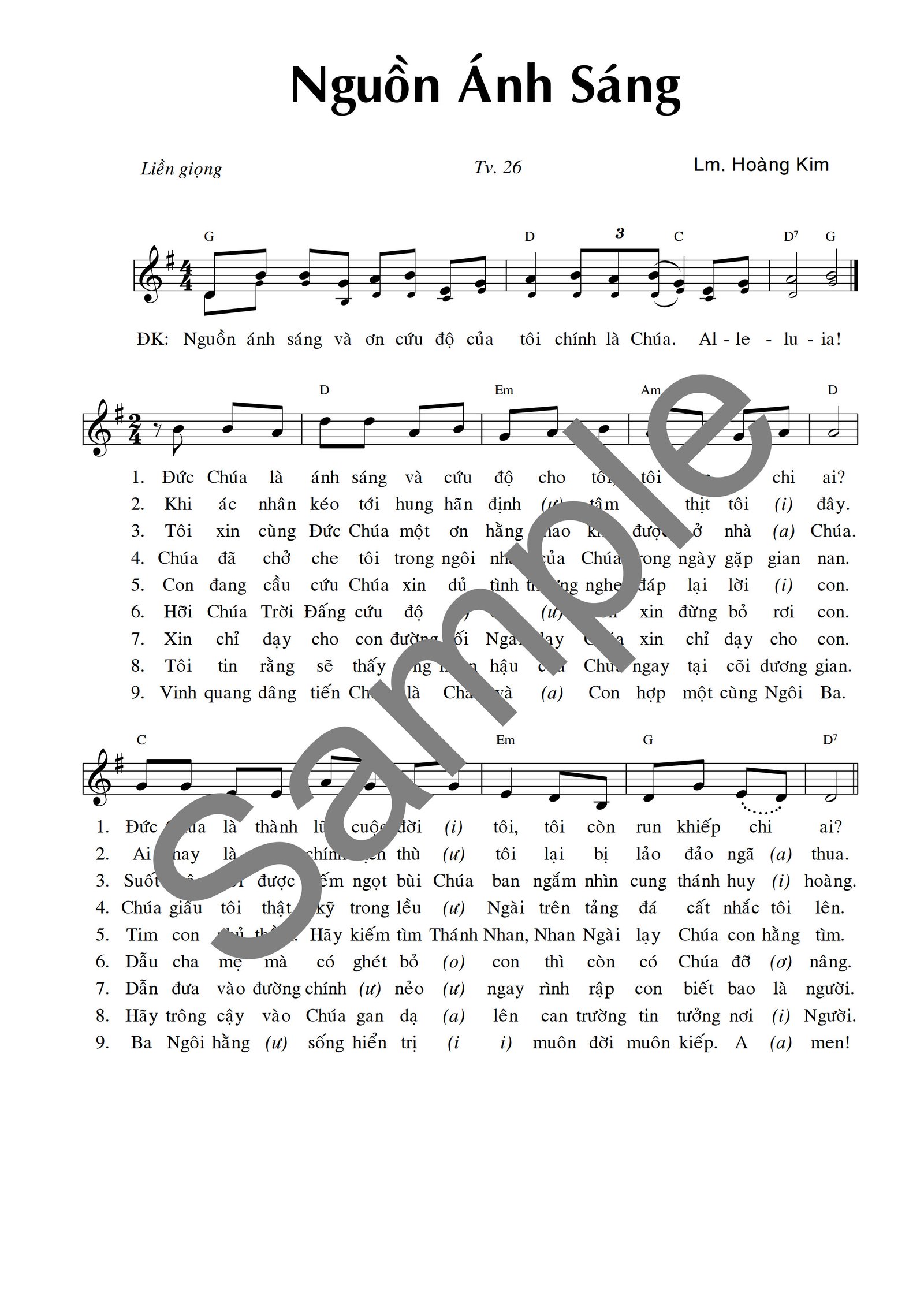 Nhạc: Ngoại Quốc – Lời Việt: Lm. Hoàng Kim XEM BẢN MẪU NGHE NHẠC