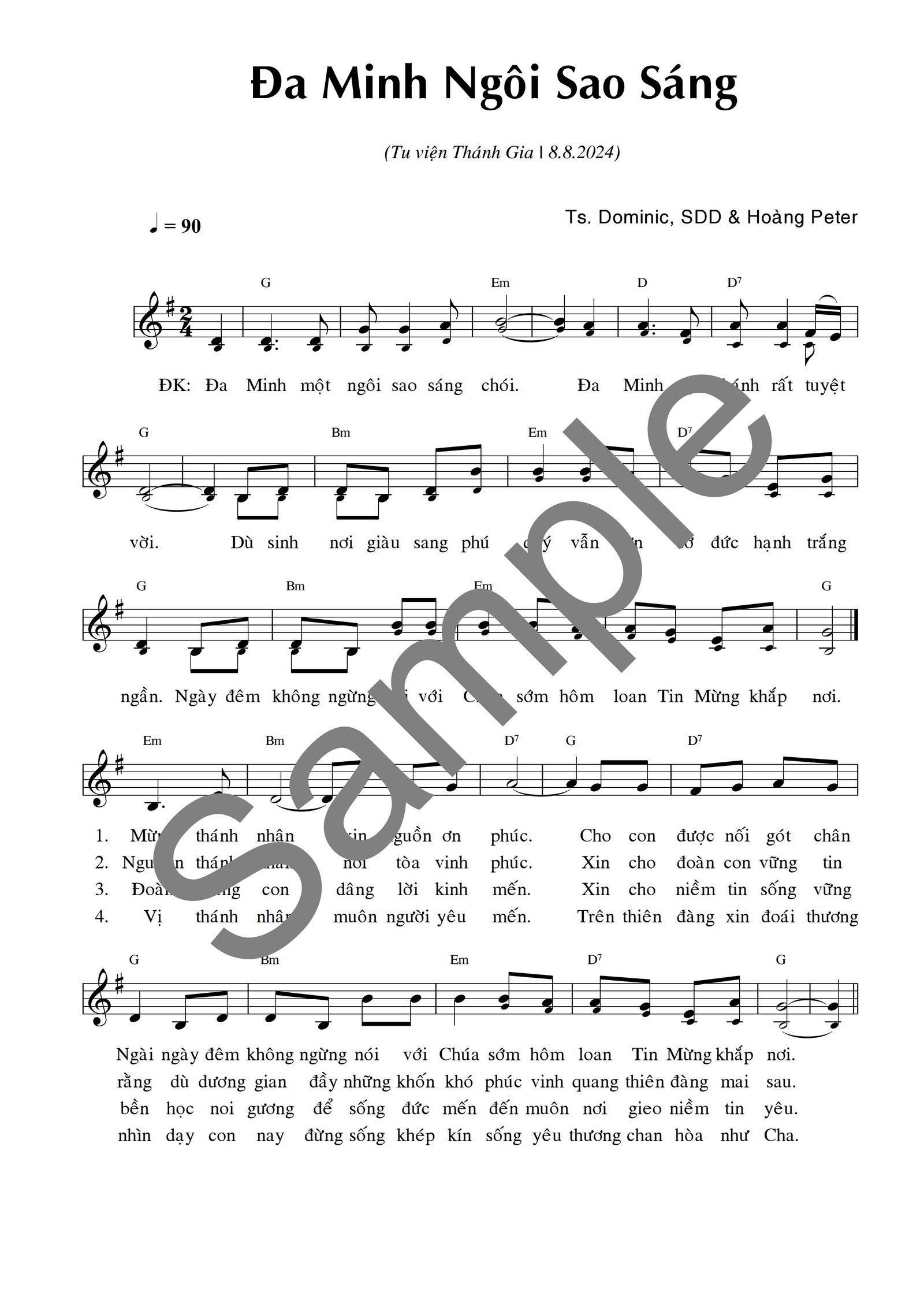 Tác Giả: Hoàng Peter & Dominic, SDD XEM BẢN MẪU NGHE NHẠC