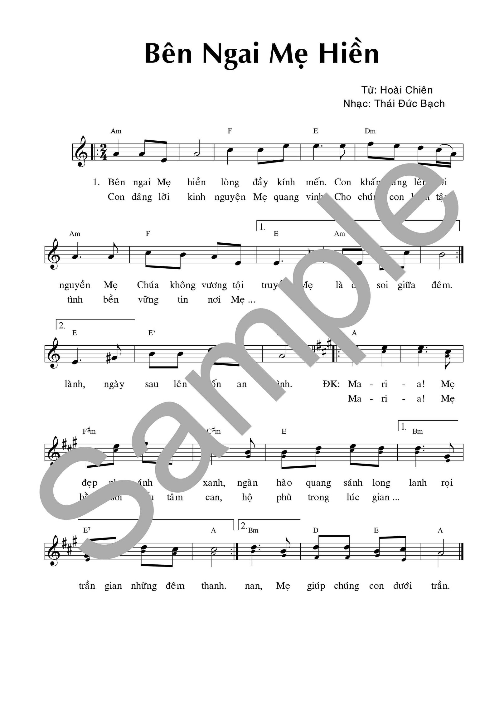 Từ: Hoài Chiên – Nhạc: Thái Đức Bạch XEM BẢN MẪU NGHE NHẠC
