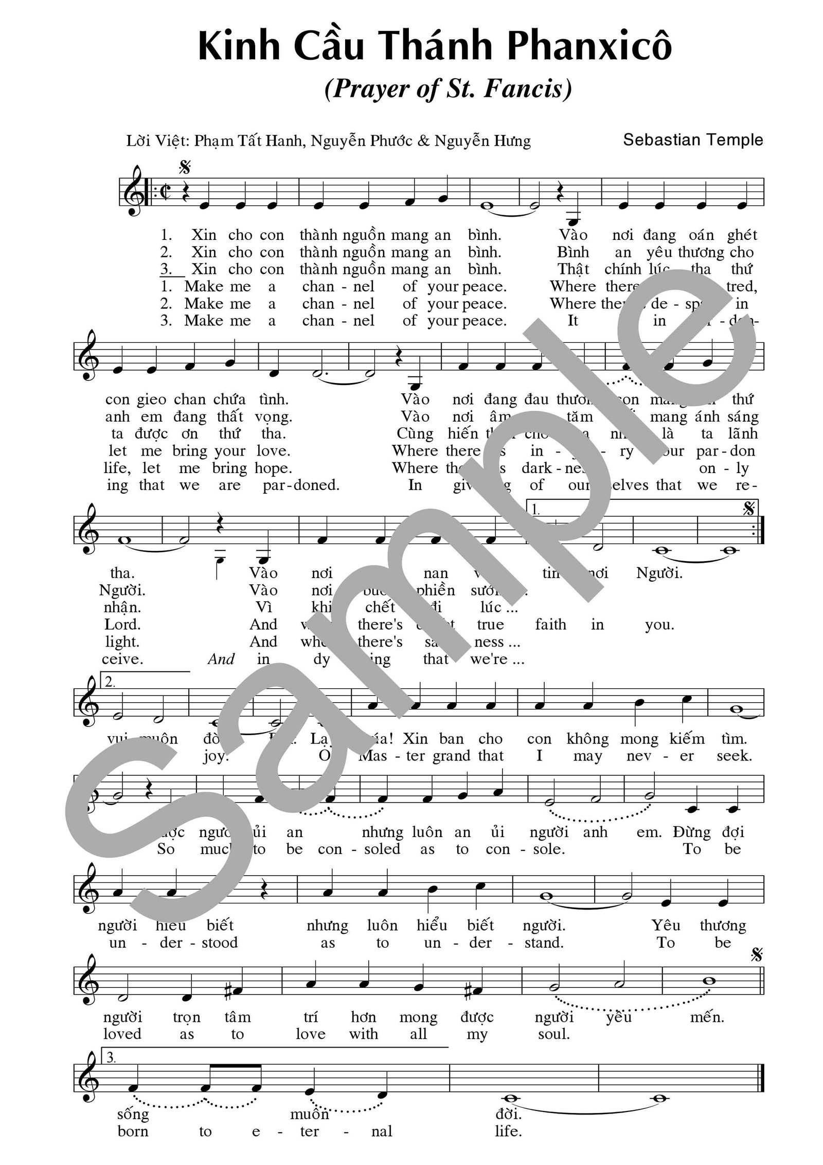 Nhạc: Sebastian Temple – Lời Việt: Phạm Tất Hanh, Nguyễn Phước & Nguyễn Hưng XEM BẢN MẪU