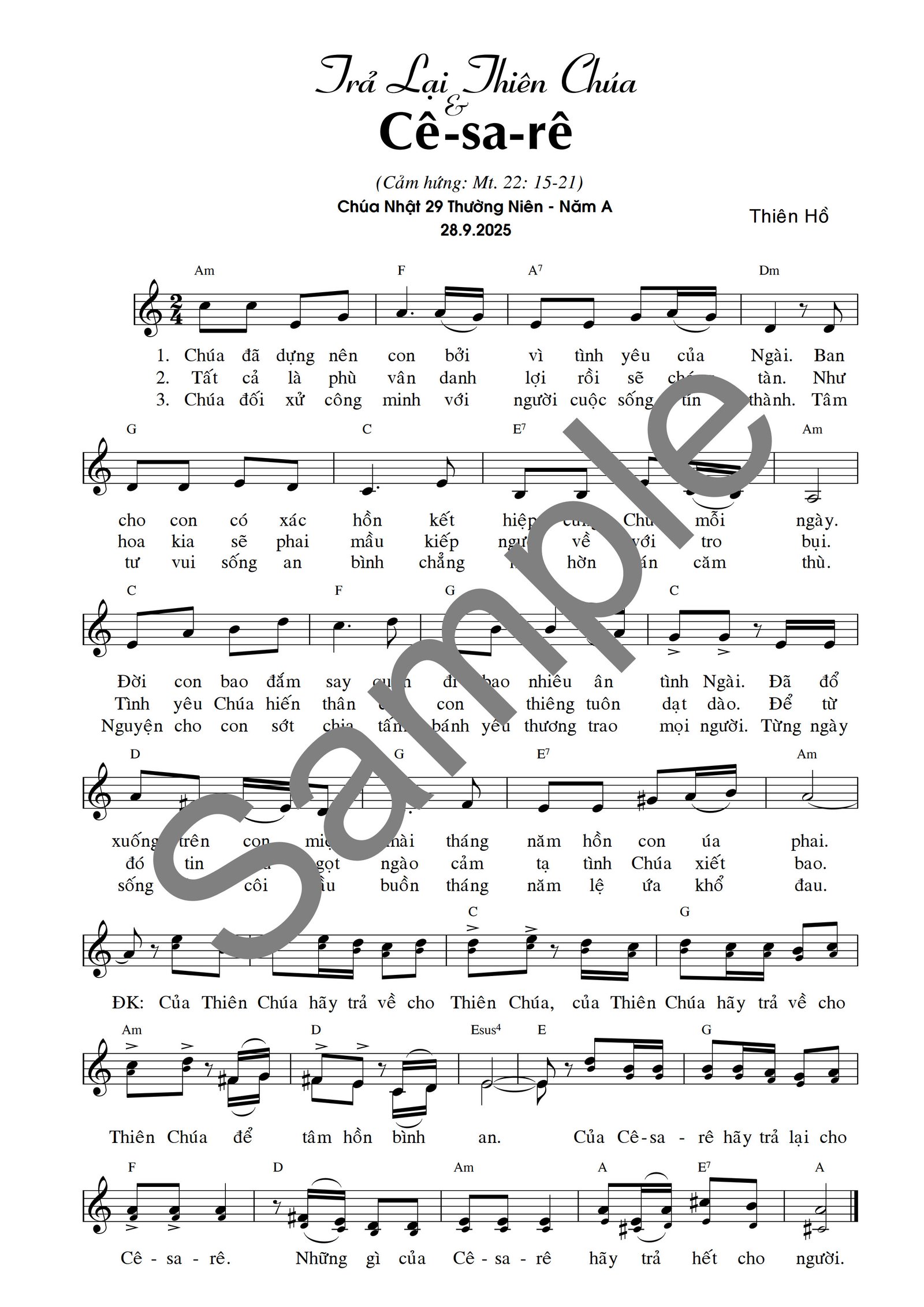 Trả Lại Cho Thiên Chúa (Mt. 22: 15-21)