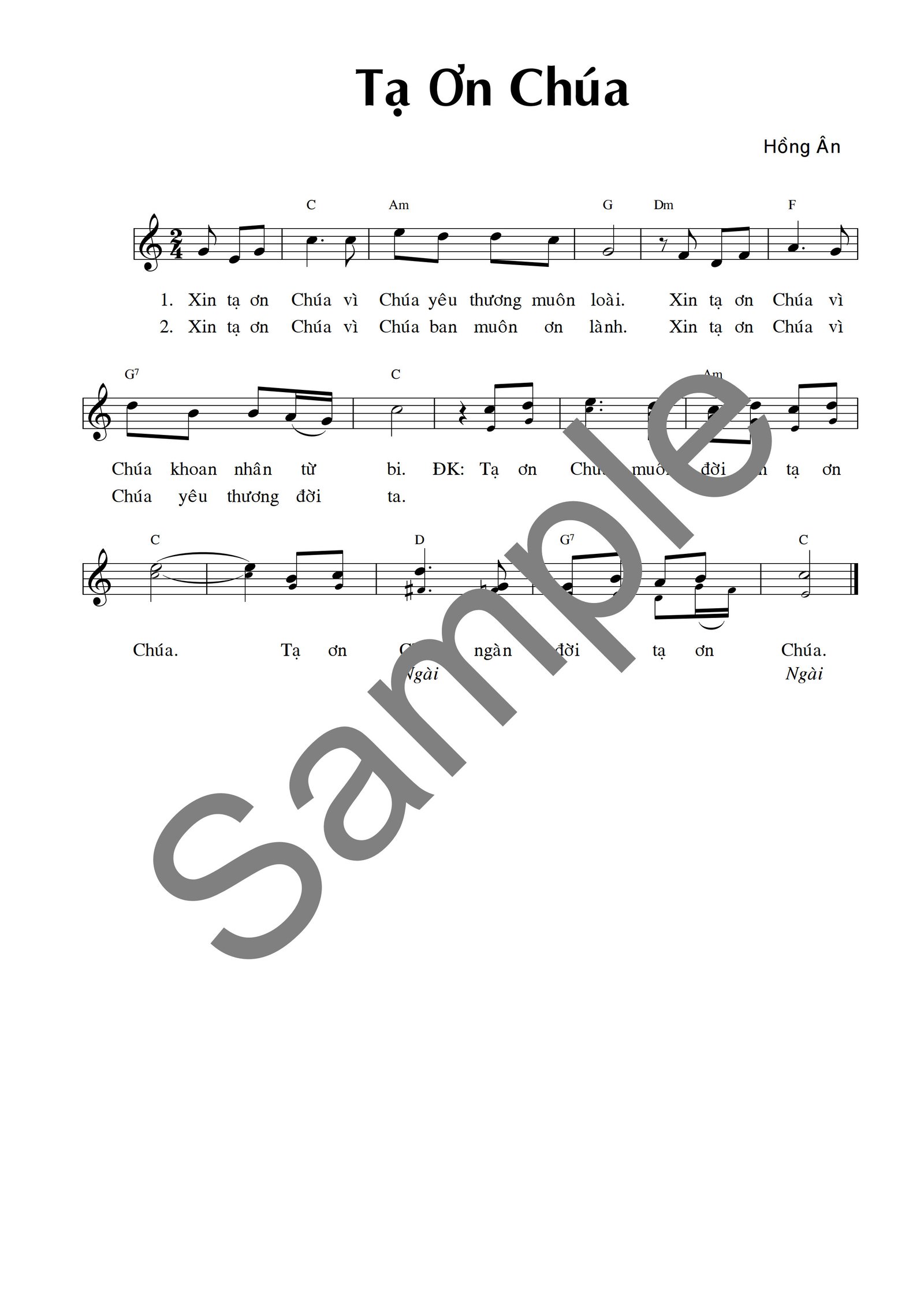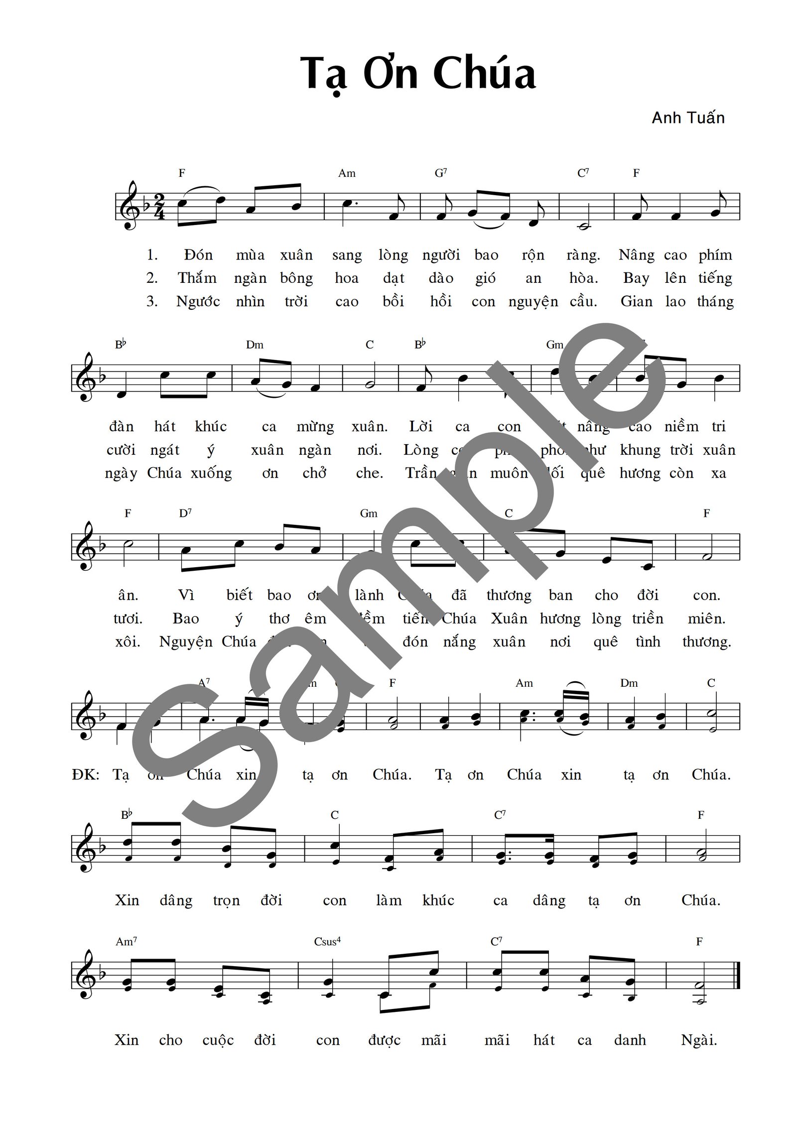 009Tạ Ơn Chúa Tác Giả: Quốc Vinh XEM BẢN MẪU NGHE NHẠC