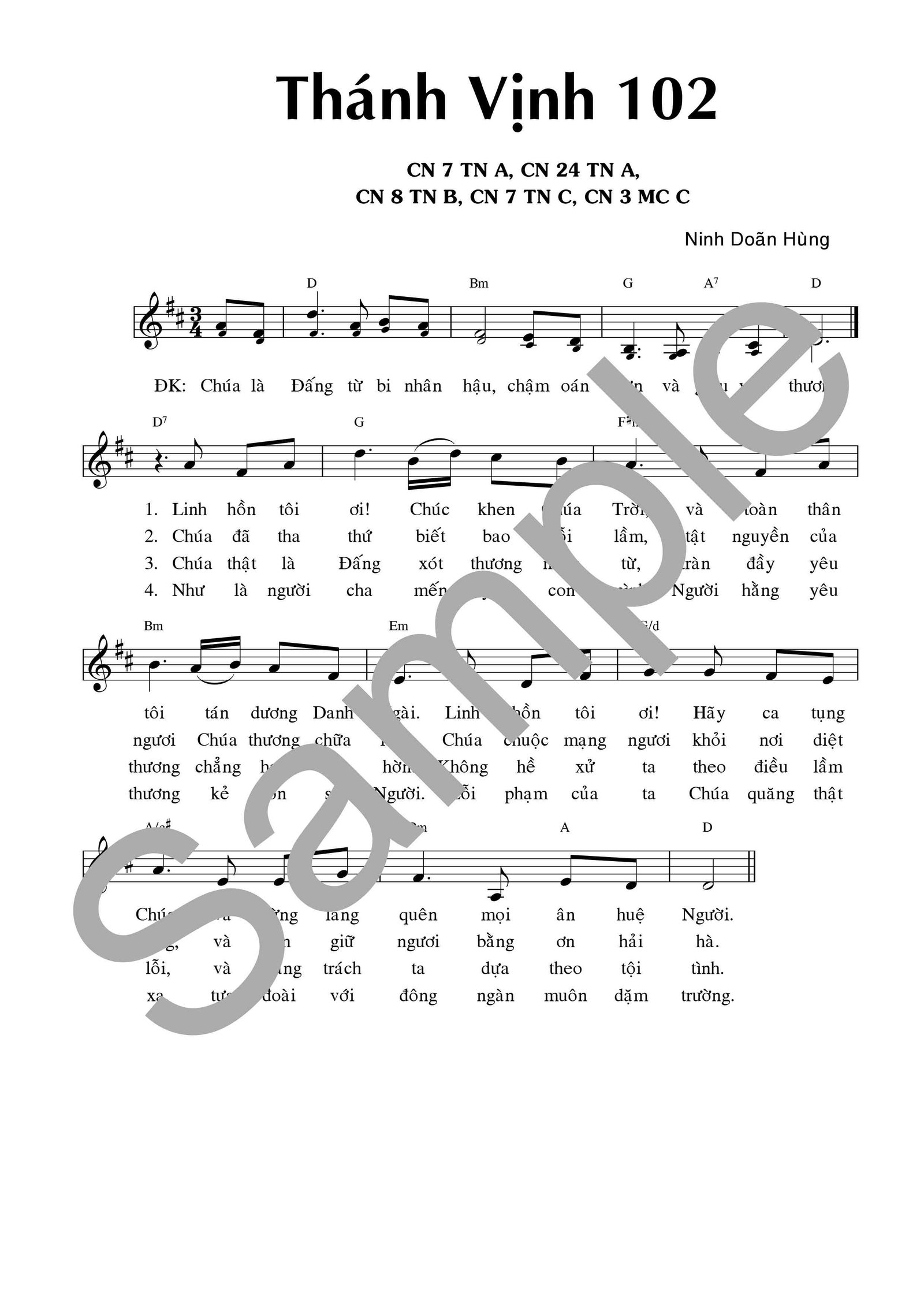 102Thánh Vịnh 102 Tác Giả: Ninh Doãn Hùng XEM BẢN MẪU NGHE NHẠC
