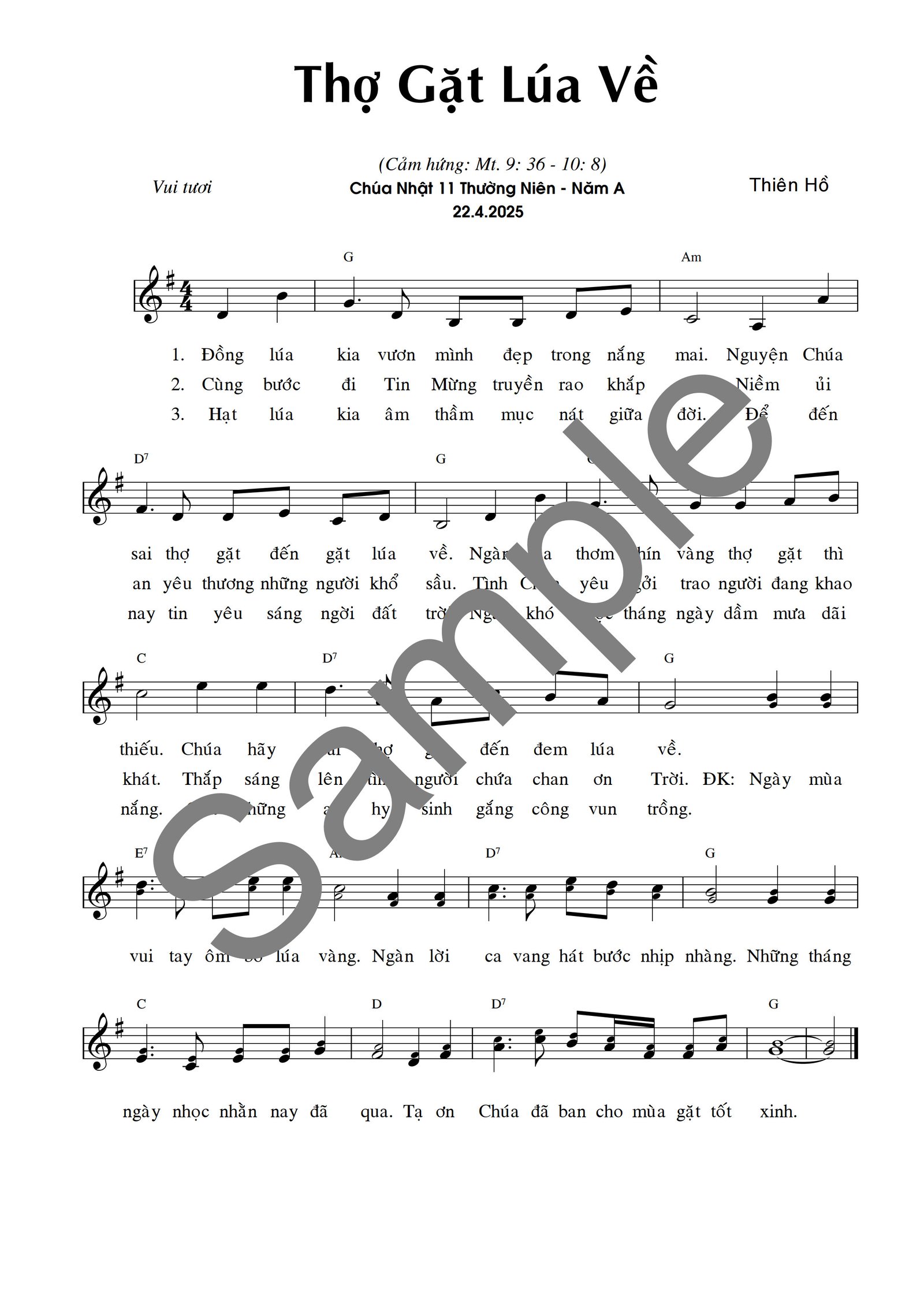 Thợ Gặt Đang Thiếu (Mt. 9: 36, 10: 8)